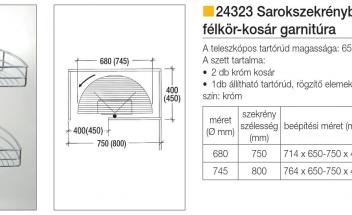 Félkör kosár 24323 króm 740x600/750 mm