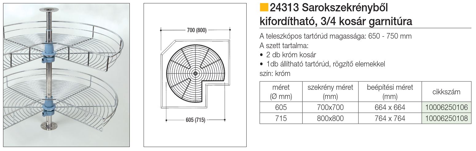 3/4 forgó kosár 24313 710x560/790 mm
